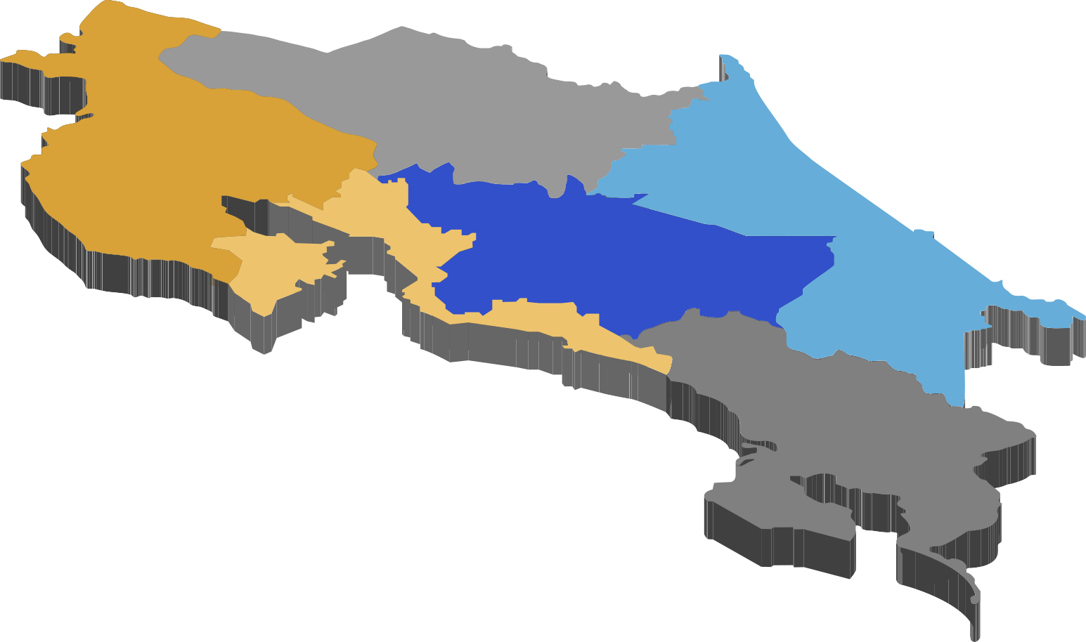 Provincias: Alajuela, Cartago, Guanacaste, Heredia, Limon, Puntarenas, San Jose